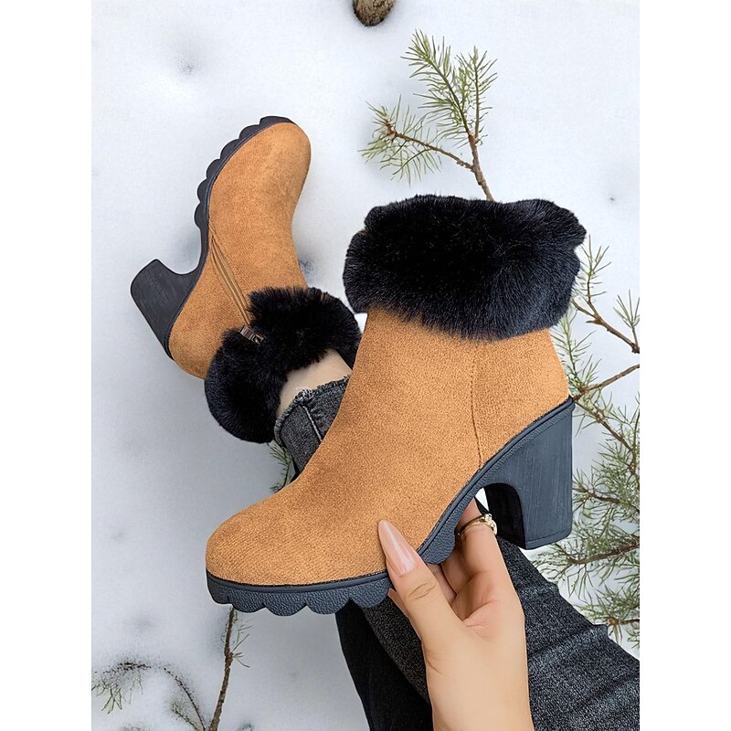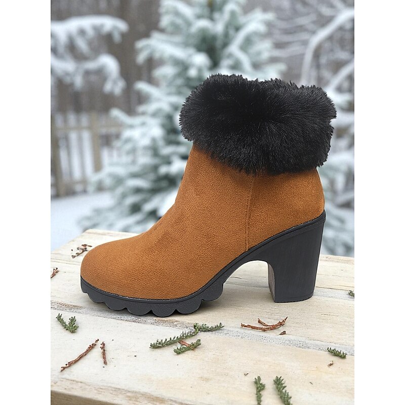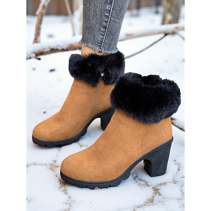 Highlights - Luxurious faux fur and faux suede upper materials - Stylish chunky heel for added comfort and stability - Classic round toe shape for a timeless look - Durable rubber outsole for long-lasting wear