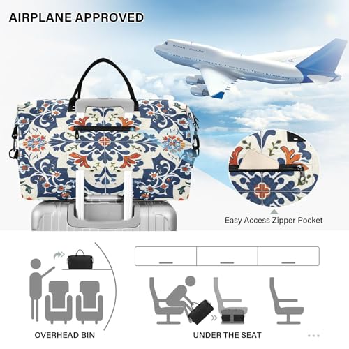 CEBUGI Floral Pattern Quilted Duffle Bag for Women Large Carry On Travel Weekend Bag Hospital Bags for Labor and Delivery 7
