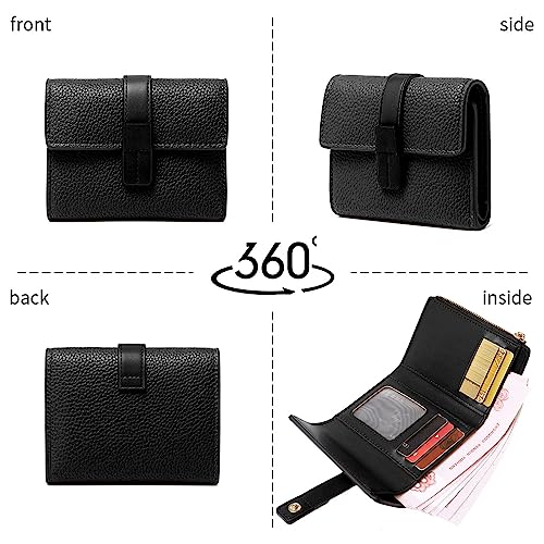 AOXONEL Small Womens Wallet Leather Wallets for Women Rfid Ladies Wallets Trifold Wallet Compact Thin with Card Slots and Zipper Coin Pocket (Black) 4