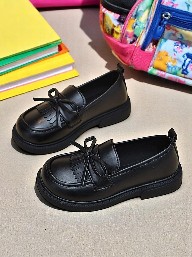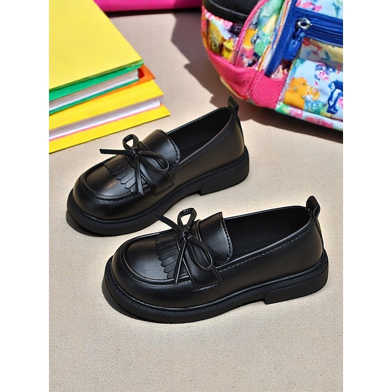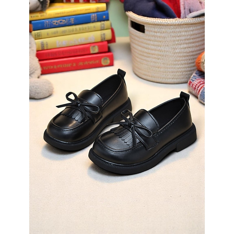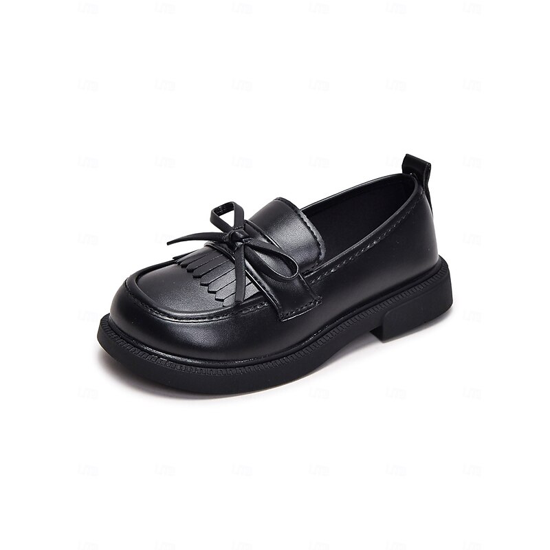 HOT ! Little Girls' Faux Leather School Loafers with Fringe and Bow – Comfortable Moccasin Style Shoes for School & Daily Wear