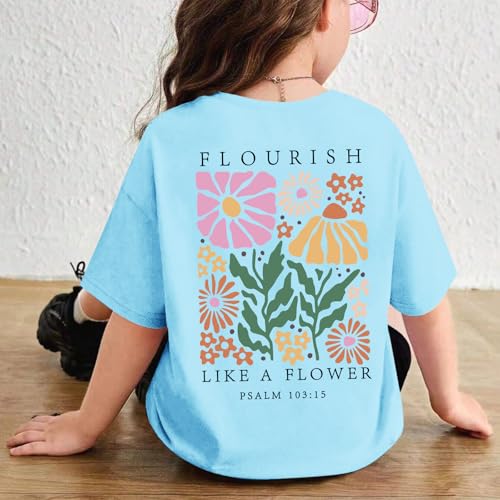 • Features:cute shirts for girls,christian shirts for kids,kids jesus shirt,flower girl shirt,bible verse shirt, this cute girls graphic tees is printed on both sides, with the Bible-quoted phrase "FLOURISH LIKE A FLOWER" printed on the back