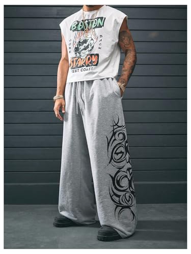 HOT ! Men's Baggy Sweatpants Graphic Drawstring Waist Wide Leg Sweatpants Athletic Pants Joggers Trendy