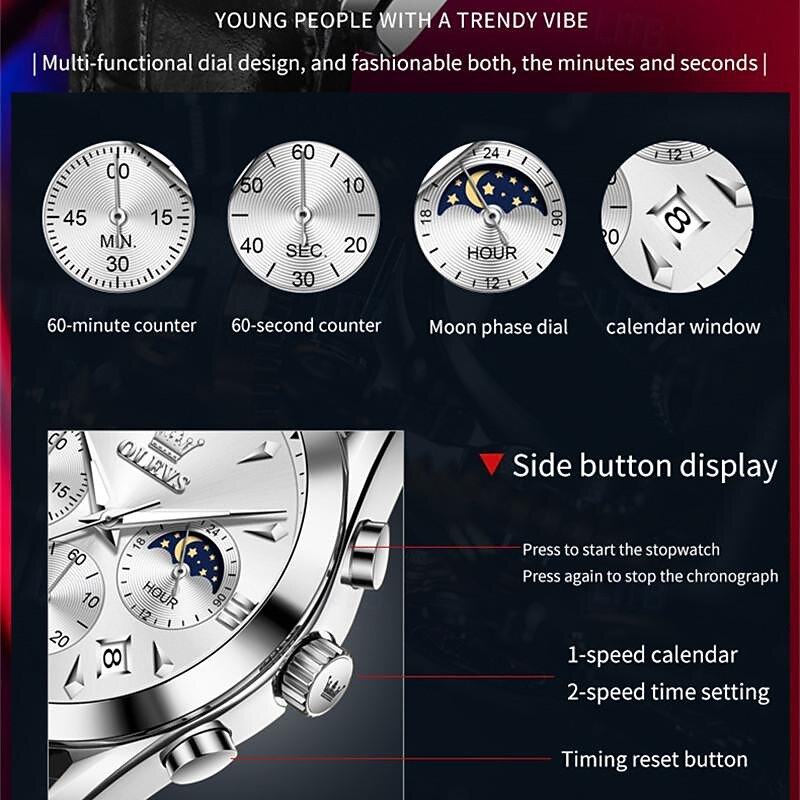 $33.99 - New Olevs Olevs Brand Fashion Trend Men'S Business Watch Luminous Chronograph Calendar 24 Hours Multi-Function Quartz Watch Casual Versatile Waterproof Sports Men'S Wristwatch 2025. Shop for cheap Quartz Watches online? Buy at lightinthebox.com on sale today!