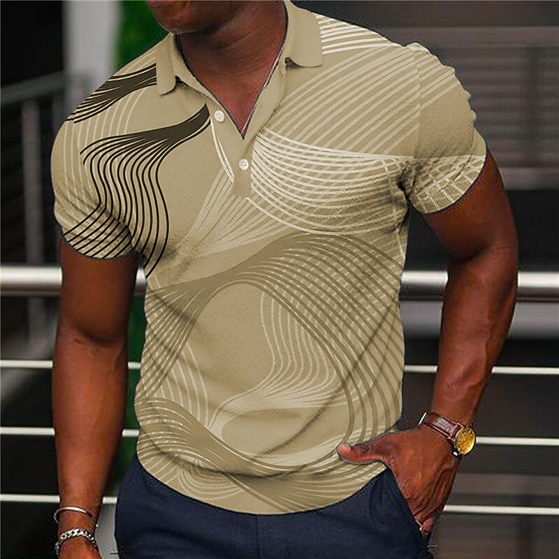 More information about Men's Geometric Polo Shirts Golf Shirt Short Sleeve Polo Shirts Collared Shirts Business Casual Vacation Wear Formal Wear Festival Wear 3D Print Buttons Blue Brown Green