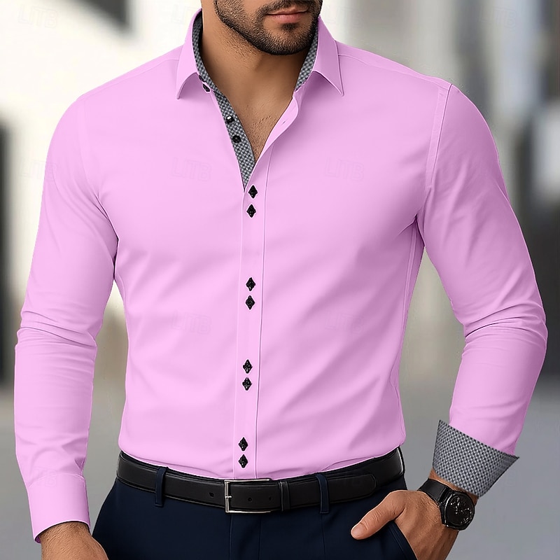 More information about Men's Dress Shirt Button Down Shirt Wrinkle Resistant Wedding Outdoor White Pink Long Sleeve Turndown Summer Spring Clothing Apparel
