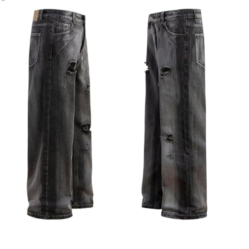 More information about Men's Washed Denim Pants Ripped Cargo Loose Straight Wide Leg Floor Length Jeans