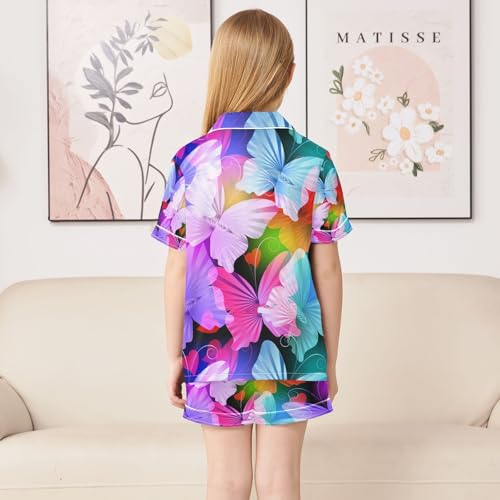 senya Colorful Glowing Radial Butterflies Satin Summer Pajama Sets Silk Short Sleeve Button Down Sleepwear 6