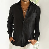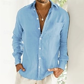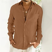 More information about Men's Linen Shirt Summer Shirt Beach Wear Button Up Shirt Plain Vacation Casual Black Blue Brown Khaki Long Sleeve Turndown Spring & Fall Clothing Apparel Front Pocket