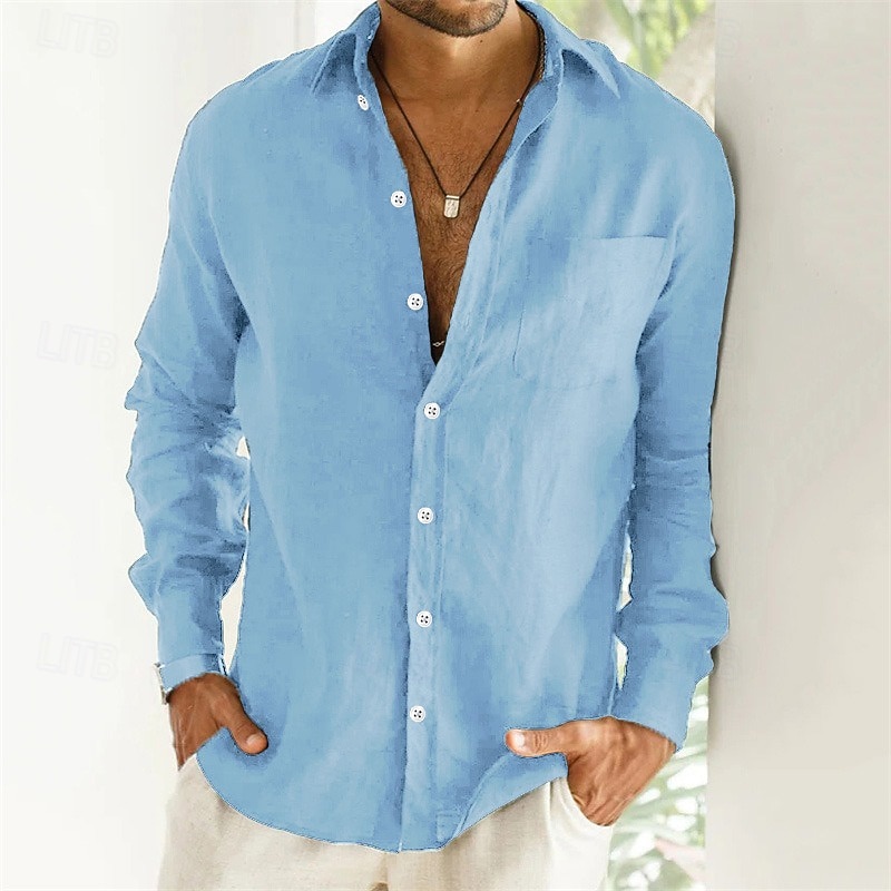 Highlights - Long Sleeve: This linen shirt features long sleeves, perfect for cooler temperatures and a stylish look. - Men's: Designed specifically for men, this shirt offers a comfortable and flattering fit. - Linen Shirt: Made from high-quality linen fabric, this shirt ensures breathability and a soft feel against the skin. - Vacation: Ideal for vacation, this shirt offers a relaxed and casual style that is perfect for enjoying holidays or leisure time. - Turndown Neckline: With a turndown neckline, this shirt adds a touch of sophistication and elegance to any outfit.