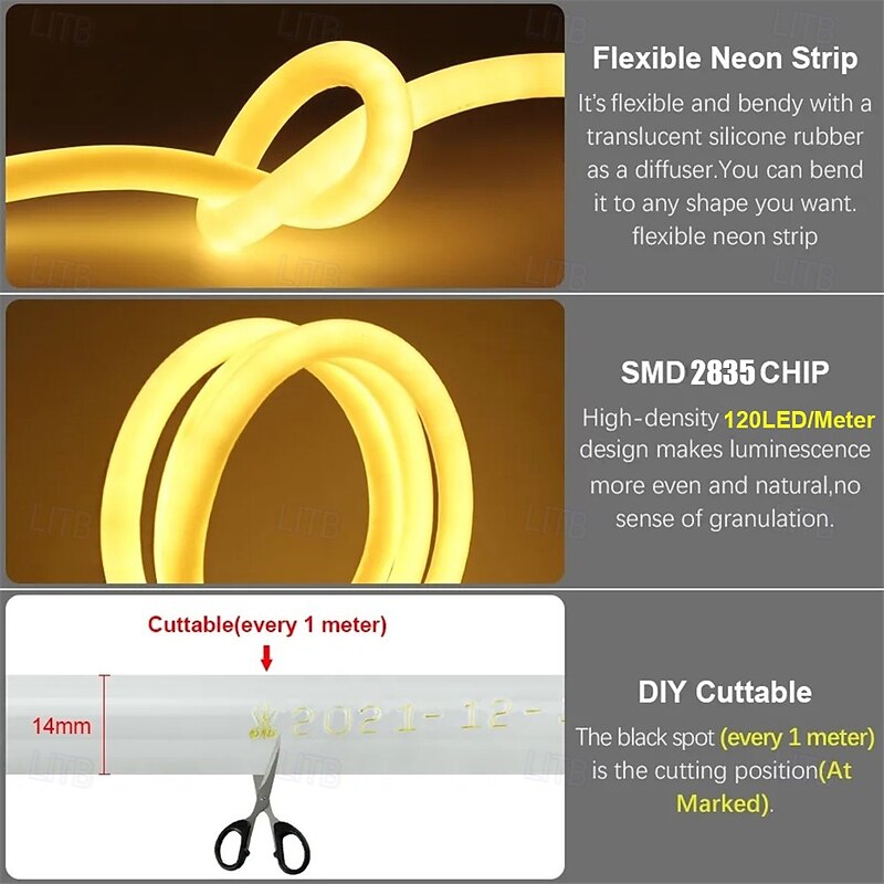 $70.19 - 360 Neon Light LED Strip AC110 16-100 ft Flexible/Waterproof/ Dimmable Timing Warm White LED Rope Lightremote Control Suitable for Home/Garden/Building Decoration DIY Decor US Plug 2025. Shop for cheap Neon LED Lights online? Buy at lightinthebox.com on sale today!