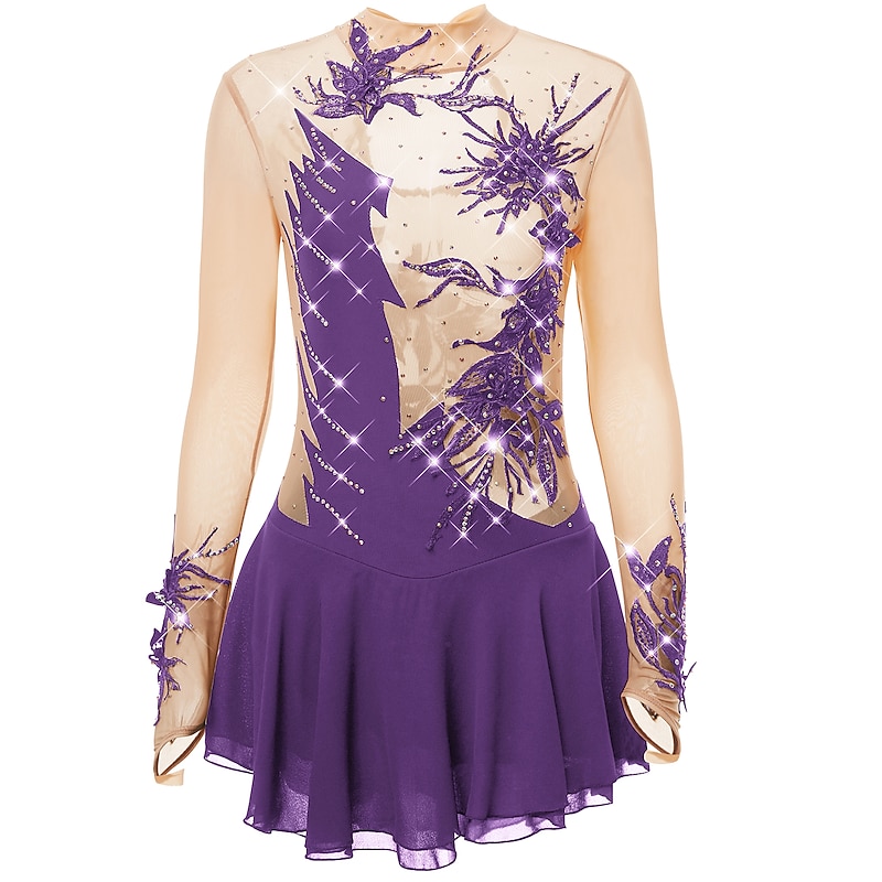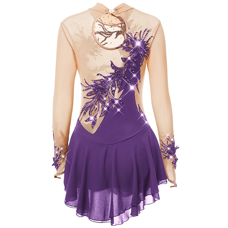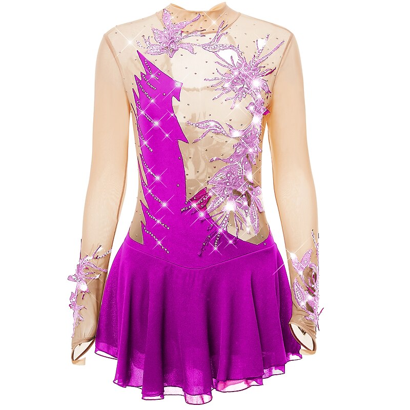 Figure Skating Dress Women's Girls' Ice Skating Dress Outfits Light Purple Yan pink Violet Spandex High Elasticity Practice Skating Wear Handmade Fashion Long Sleeve Ice Skating Winter Sports Figure 12