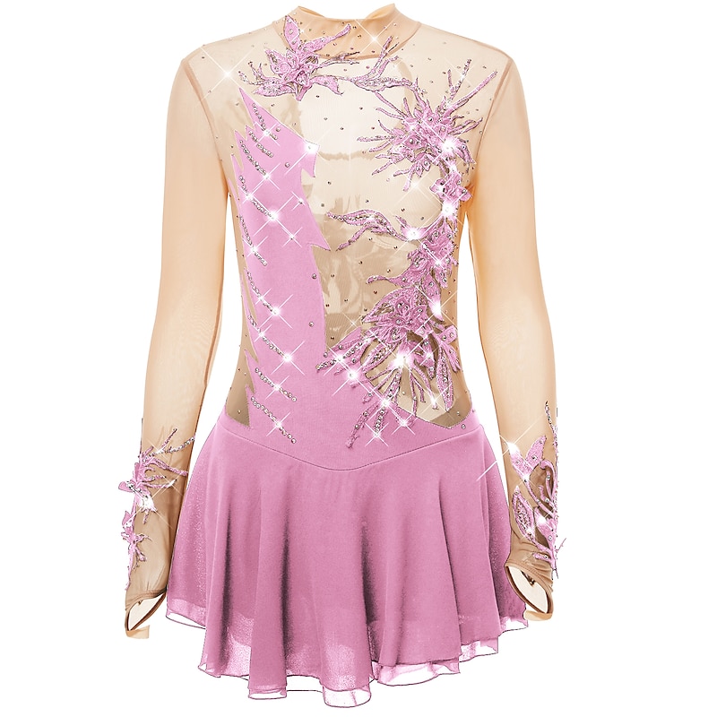 Figure Skating Dress Women's Girls' Ice Skating Dress Outfits Light Purple Yan pink Violet Spandex High Elasticity Practice Skating Wear Handmade Fashion Long Sleeve Ice Skating Winter Sports Figure 30