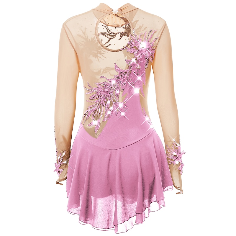 Figure Skating Dress Women's Girls' Ice Skating Dress Outfits Light Purple Yan pink Violet Spandex High Elasticity Practice Skating Wear Handmade Fashion Long Sleeve Ice Skating Winter Sports Figure 10