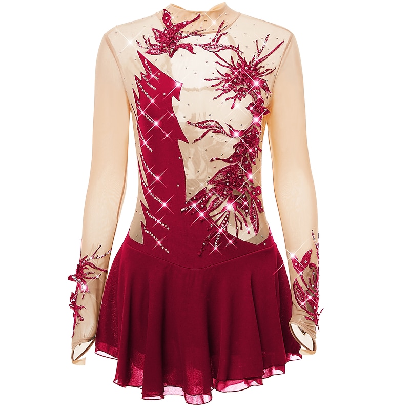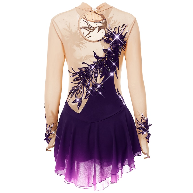 More information about Figure Skating Dress Women's Girls' Ice Skating Dress Outfits Light Purple Yan pink Violet Spandex High Elasticity Practice Skating Wear Handmade Fashion Long Sleeve Ice Skating Winter Sports Figure