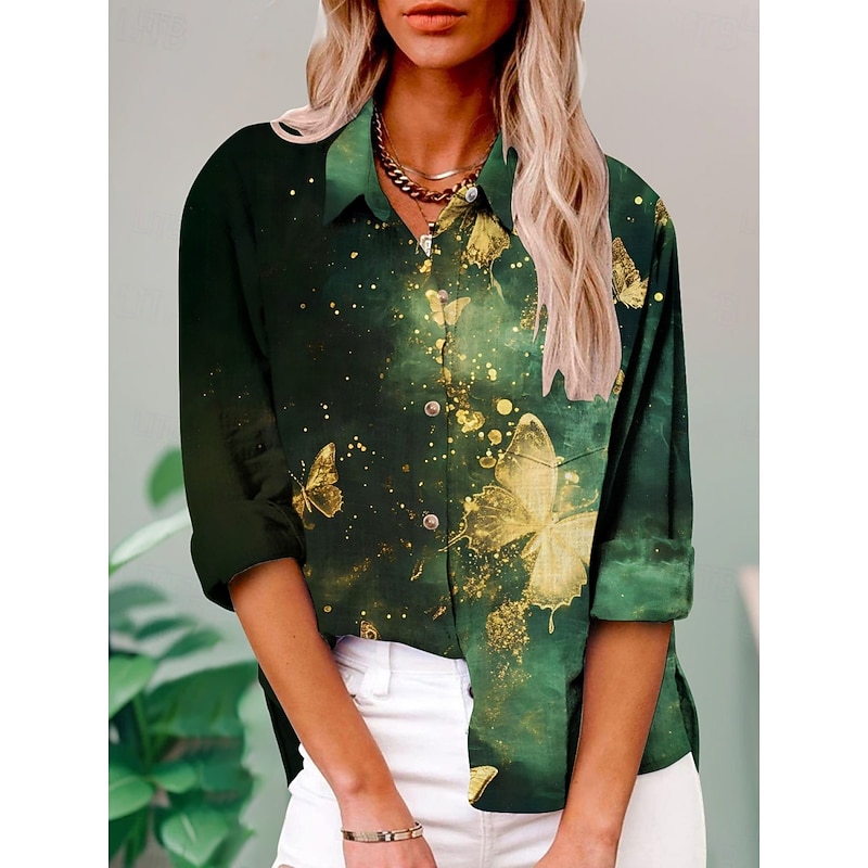 More information about Women's Shirt Floral Butterfly Active Daily Stylish Long Sleeve Shirt Collar Regular Tops Daily Holiday Buttons Print White Yellow Blue Purple Green Summer Spring Fall