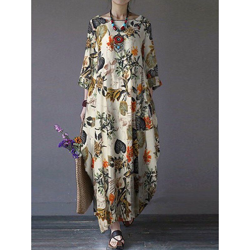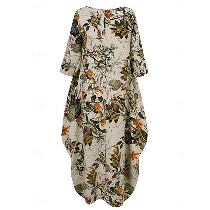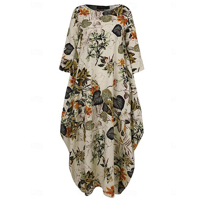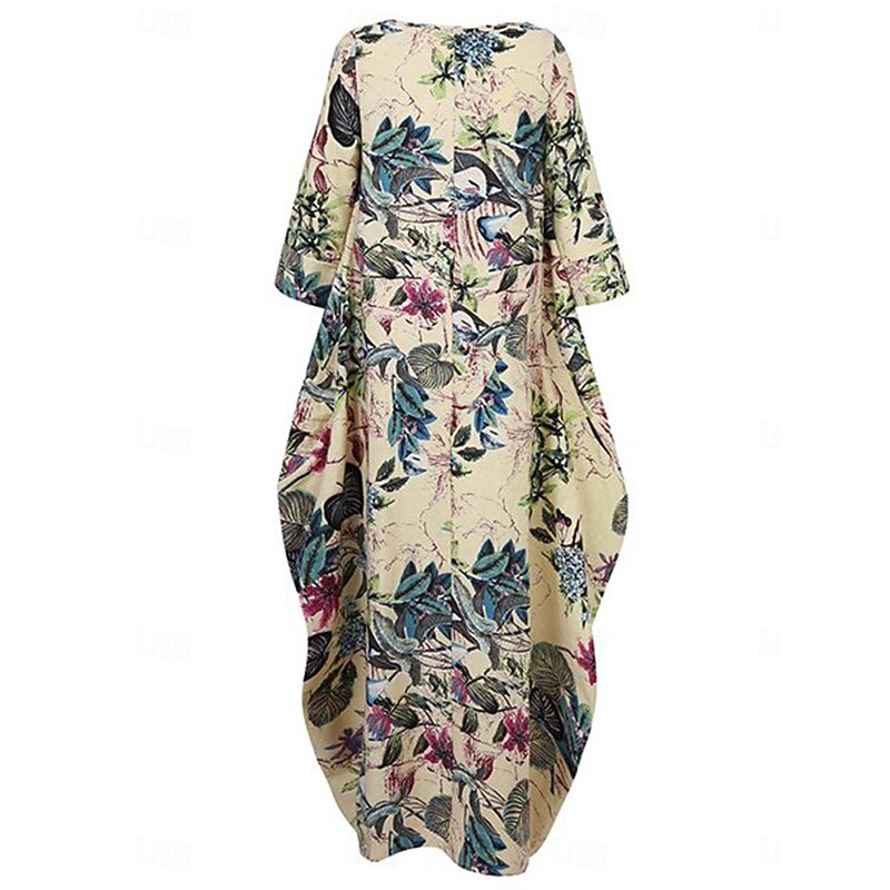 More information about Women's Maxi Dress Cotton Linen Dresses Casual Dress Basic Casual Vacation Daily Regular Fit Floral Long Sleeve Crew Neck Magenta Navy Blue Orange Summer