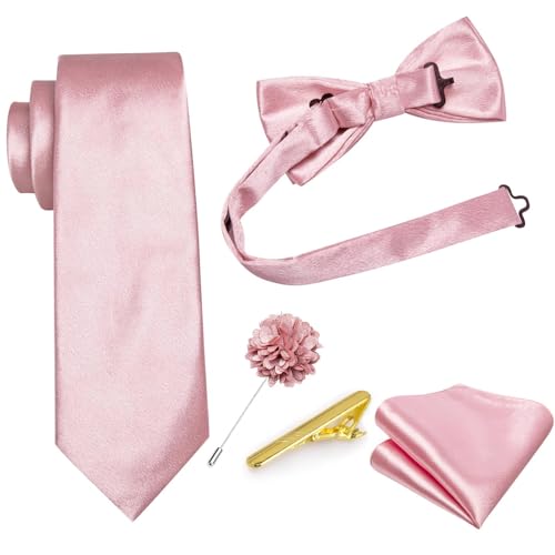 Dubulle Mens Satin Vest and Tie Solid Suit Waistcoat and Pre-tied Bowtie Set for Men Lapel Pin Wedding Party 6