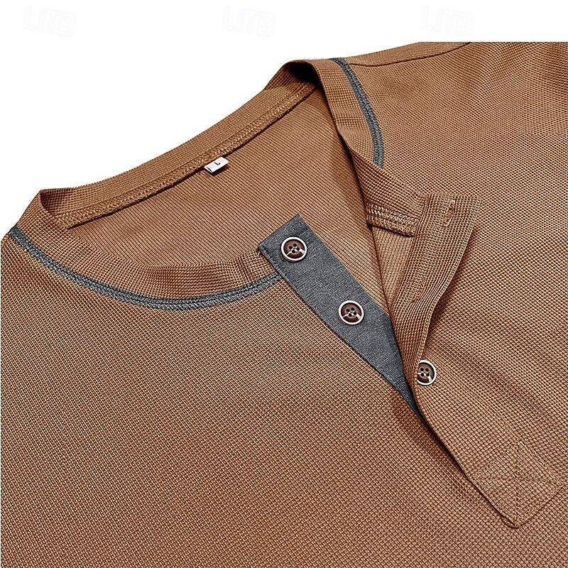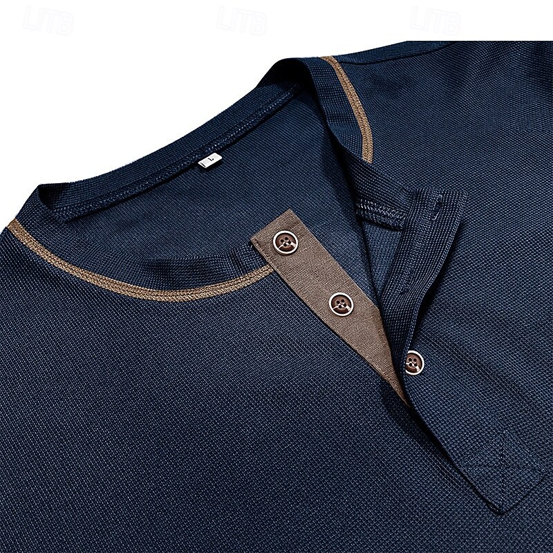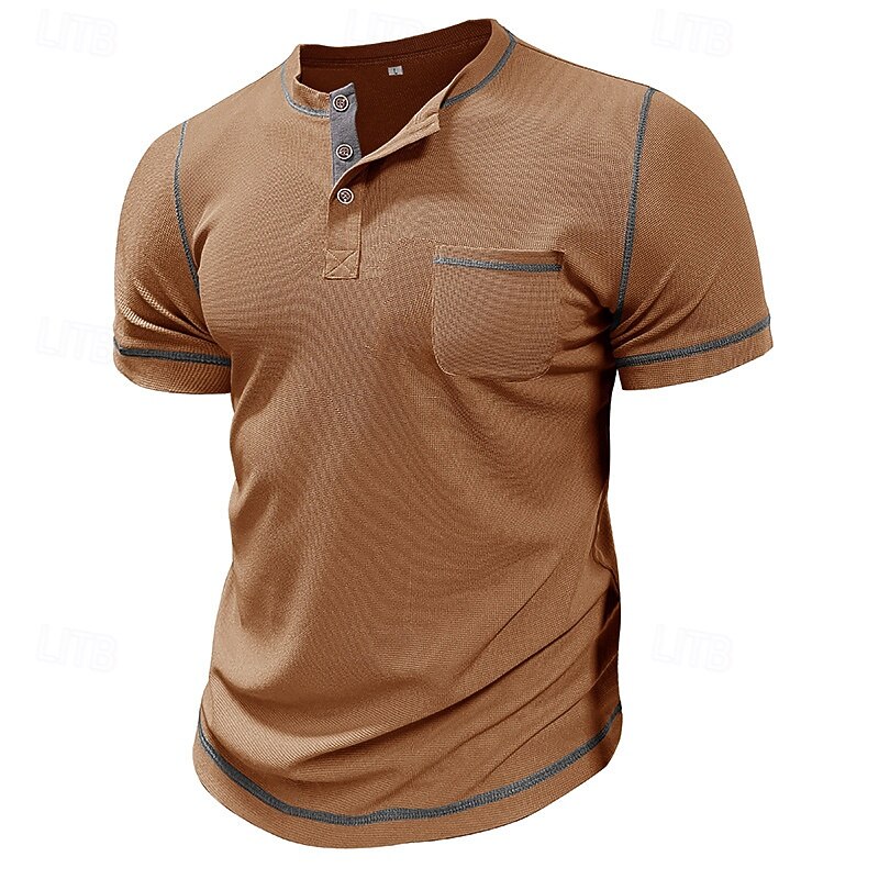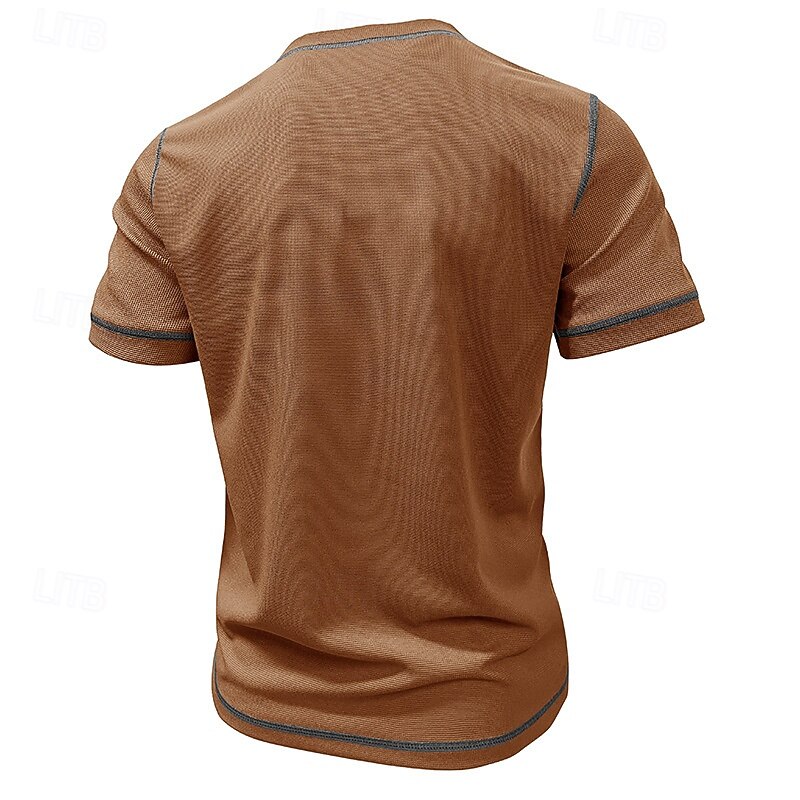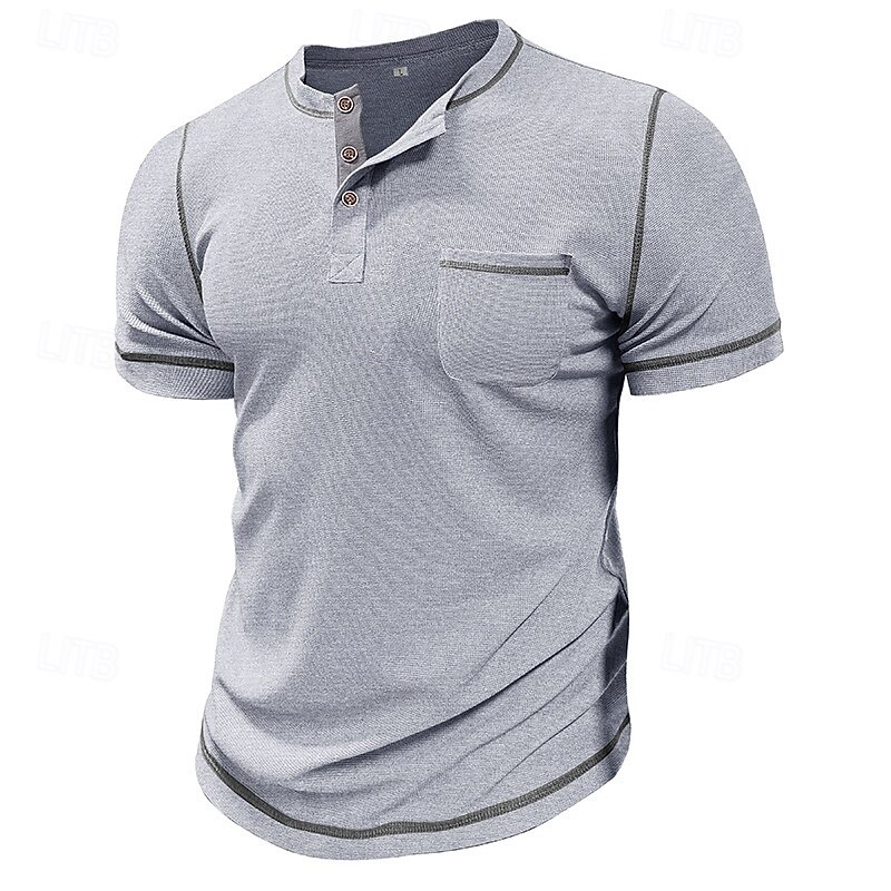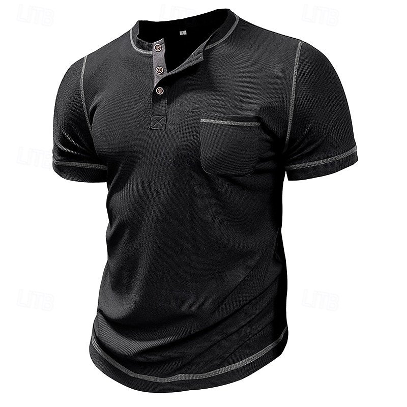 More information about Men's Waffle Tee Waffle Henley Shirt Short Sleeve Solid Color Vintage Button Up Pocket Contrast Stitching Henley Casual Daily Summer Spring Black Gray Light Blue Henley T-Shirt
