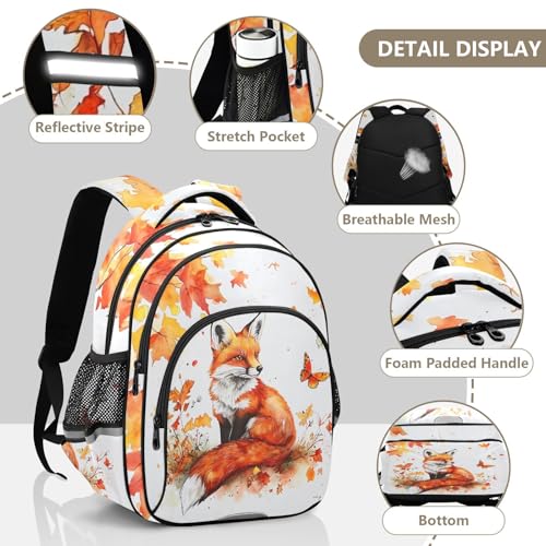 Watercolor Fall Leaf Butterfly Fox Backpack for Kids Elementary School Bag Boys Girls Bookbag Travel Backpack Daypack 3