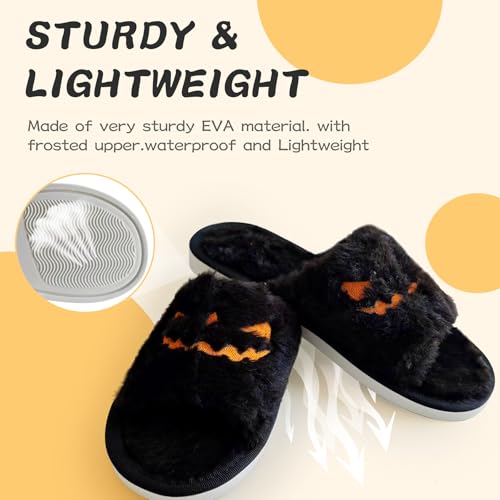Spooky Halloween Slippers - Soft Fuzz Open Toe Slides for Women, Men & Kids - Goth, Pumpkin & Bat Designs 7