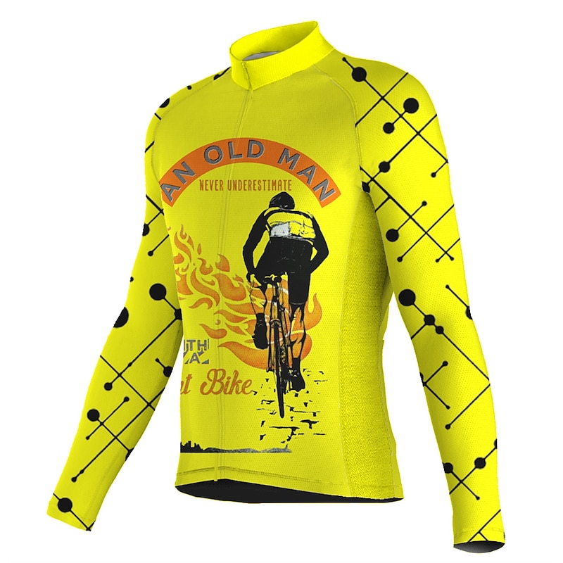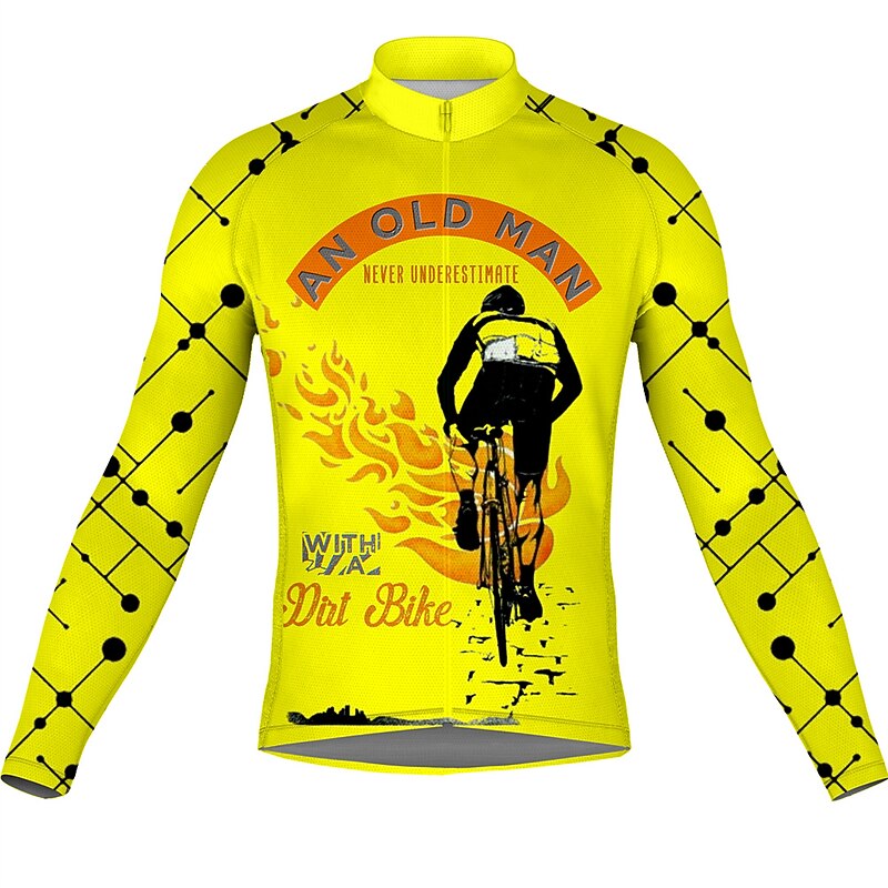 More information about Men's Cycling Jersey Graphic Long Sleeve Bike Jersey Top with 3 Rear Pockets Mountain Bike MTB Road Bike Cycling Quick Dry Reflective Strips Back Pocket Moisture Wicking Sports White Yellow Army Green