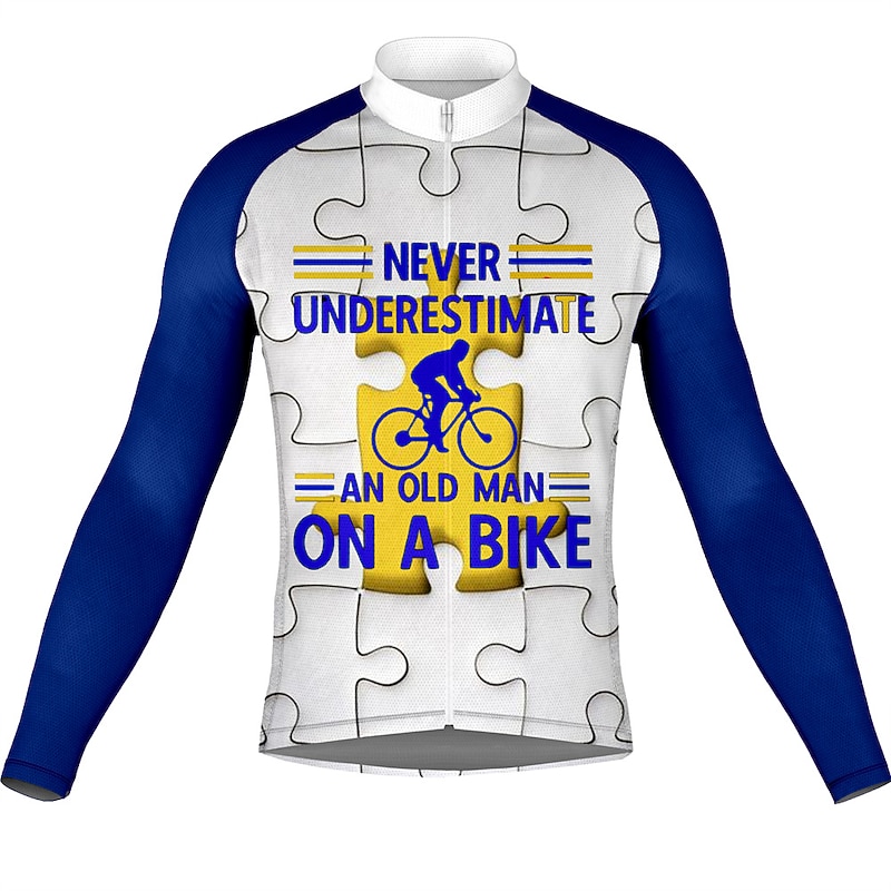 Men's Cycling Jersey Graphic Long Sleeve Bike Jersey Top with 3 Rear Pockets Mountain Bike MTB Road Bike Cycling Quick Dry Reflective Strips Back Pocket Moisture Wicking Sports White Yellow Army Green 30