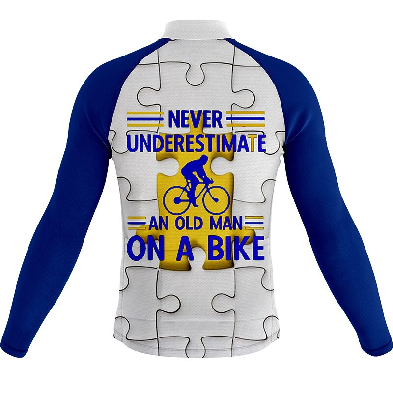 Men's Cycling Jersey Graphic Long Sleeve Bike Jersey Top with 3 Rear Pockets Mountain Bike MTB Road Bike Cycling Quick Dry Reflective Strips Back Pocket Moisture Wicking Sports White Yellow Army Green 12