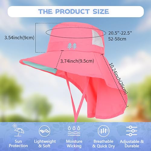 Kids Sun Hat Toddler Beach Play Hats Sun Protection Fishing Hat with Neck Flap UPF 50+ Wide Brim Boys Girls Ages 5-13 4