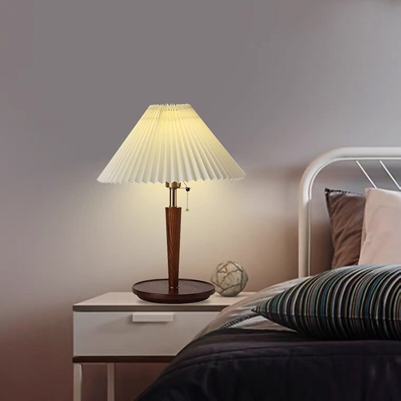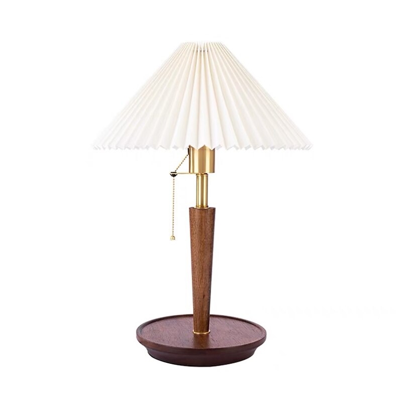 HOT ! Table Lamp with Cloth Shade and Brass Lamp Head Living Room Bedroom, Pull Switch Table Lamp, Pull Switch Table Lamp, 5W Wood Bedside Nightstand Lamp 110-240V