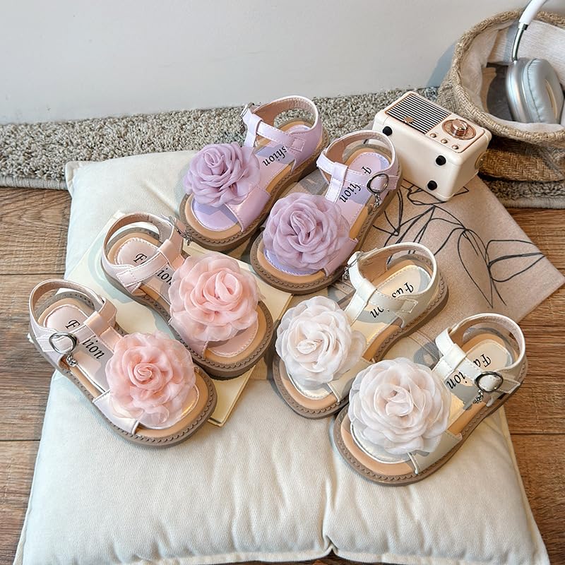 • Stylish Design: These children's sandals are adorned with beautiful flowers and pearl buckles, adding elegance and fashion to kids' summer outfits.