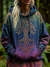 More information about Women's 3D Print Vintage Boho Hoodie Patchwork Hoodie Sweatshirt Floral Viking Pullover Sweatshirt Floral Graphic Casual Long Sleeve Hooded Street Print Front Pocket Purple Spring Fall Winter