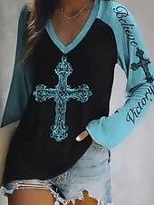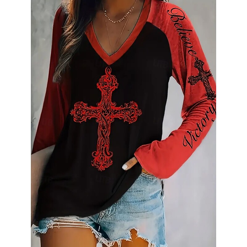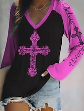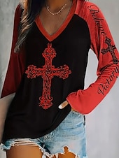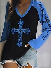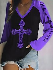 More information about Women's T Shirt Graphic Letter Fashion Casual Long Sleeve V Neck Regular Tops Daily Weekend Print Red Blue Purple Fuchsia Green Summer Spring Fall