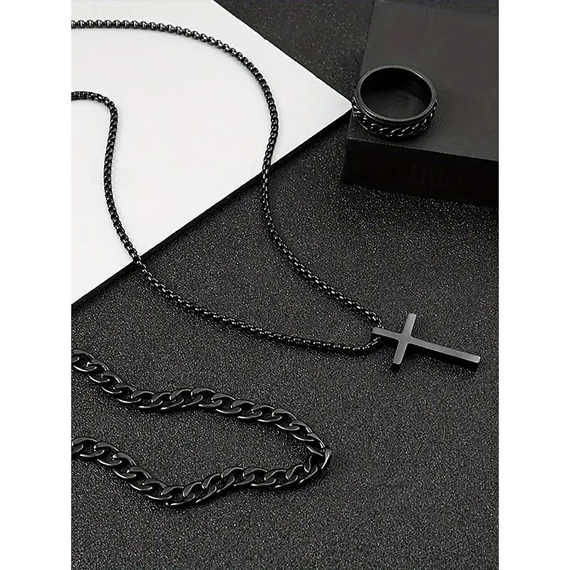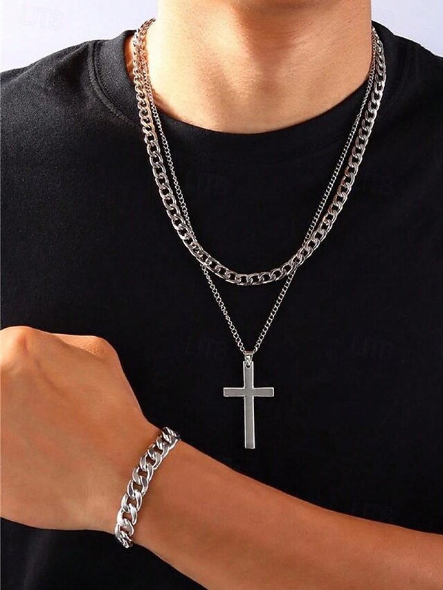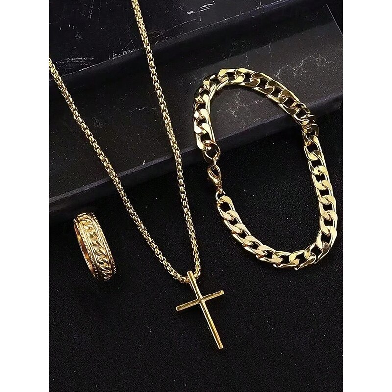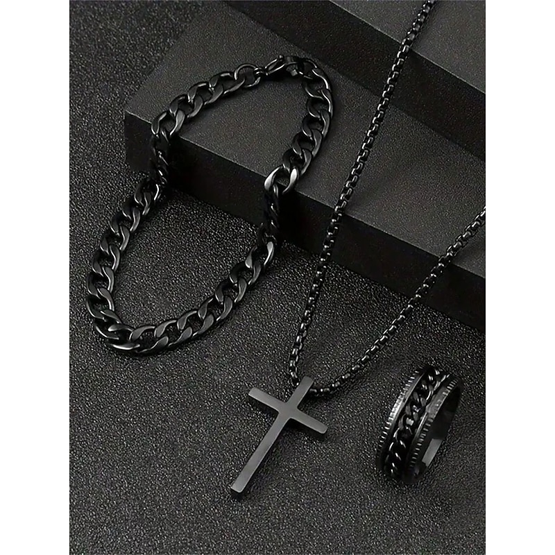 $11.99 - Men's Alloy Cross Necklace, Chain Bracelet, and Engraved Ring Set – Durable and Stylish Christian Jewelry 2025. Shop for cheap Accessories For Men online? Buy at lightinthebox.com on sale today!