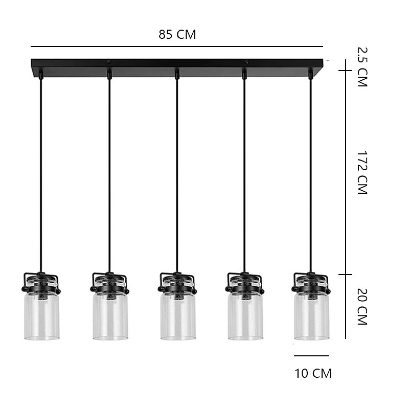 Pendant Lighting for Kitchen Island, 1/3/5-Light Dining Room Light Fixtures Hanging Linear Chandeliers, Farmhouse Chandeliers for Dining Room Pendant Light Fixtures Matte Black Finish with Glass Shades 5