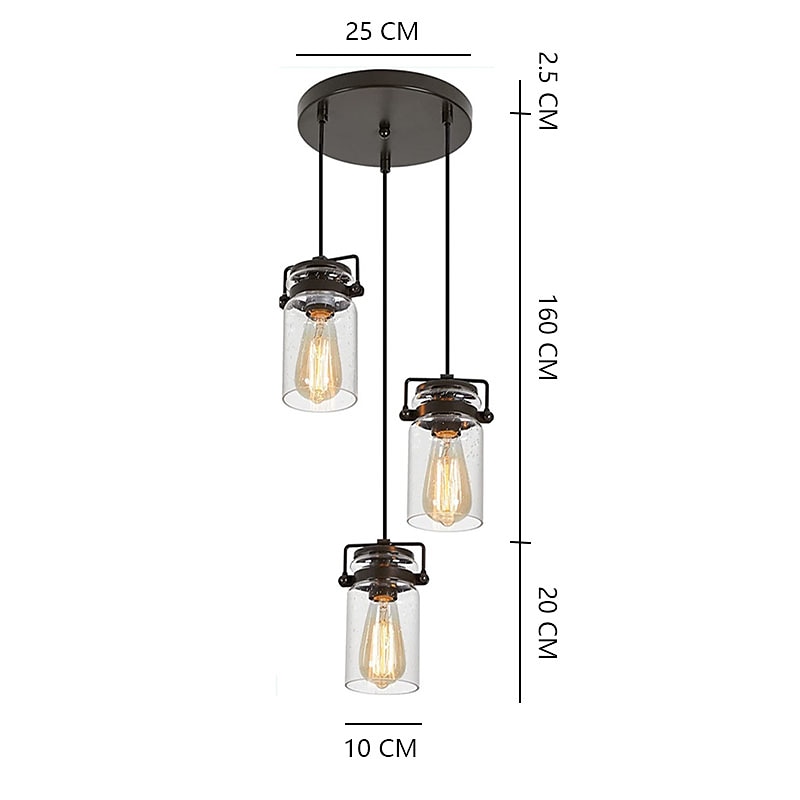 Pendant Lighting for Kitchen Island, 1/3/5-Light Dining Room Light Fixtures Hanging Linear Chandeliers, Farmhouse Chandeliers for Dining Room Pendant Light Fixtures Matte Black Finish with Glass Shades 3