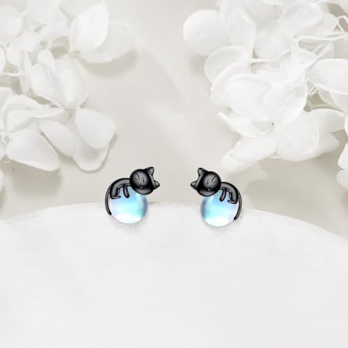 Birthstone Cat Earrings Sterling Silver Black Cat Stud Earrings Cats Jewelry Birthday Gift for Women 5