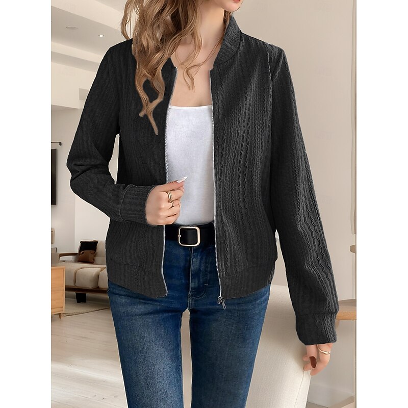 More information about Women's Casual Jacket Comfortable Breathable Full Zip Daily Casual Plain Casual Daily Regular Stand Collar Regular Fit Long Sleeve Outerwear Black Gray Spring Fall