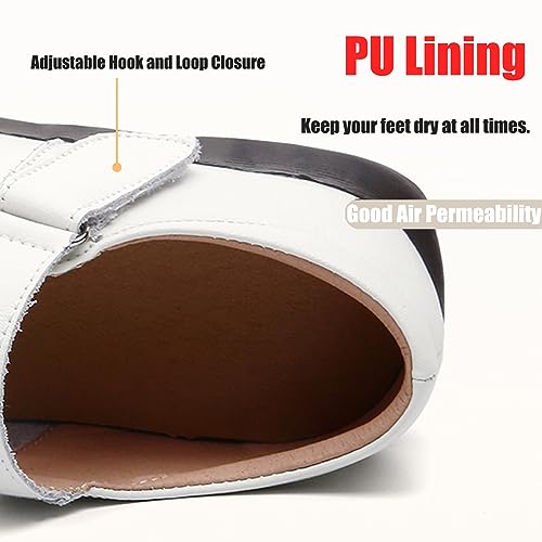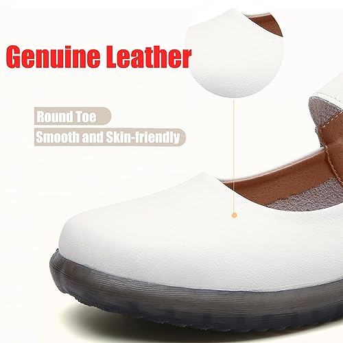 Women's Leather Mary Jane Flats with Adjustable Hook and Loop Closure Round Toe Casual Comfortable Slip On Soft Sole Ballet Flats Lightweight Mom Walking Shoes 7