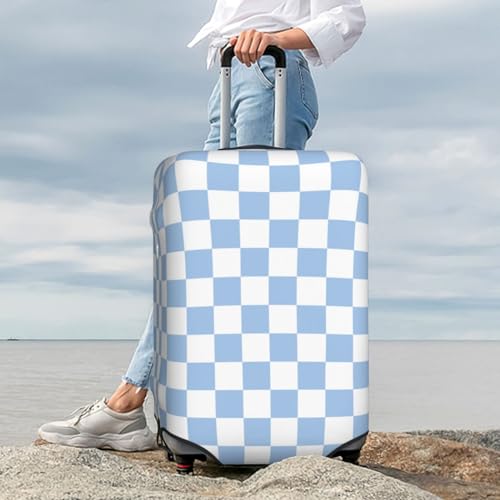 Elastic Travel Luggage Cover,Blue And White Check Pattern Dust-Proof Anti-Scratch Suitcase Cover Washable Suitcase Protector 7