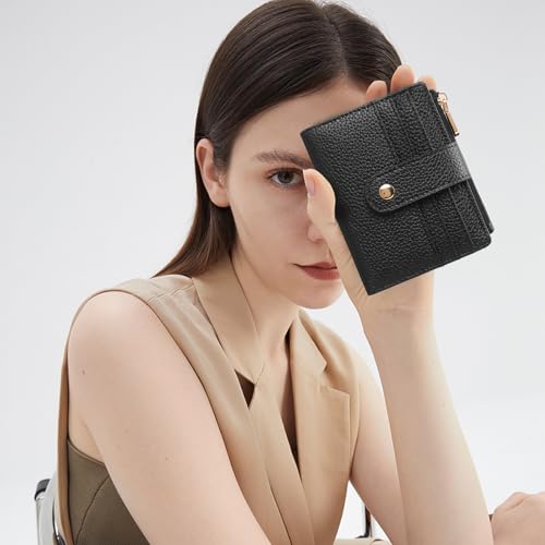 GOIACII Small Wallet for Women Slim RFID Blocking Credit Card Holder Bifold Leather Wallets with Zipper Coin Pocket Black 1