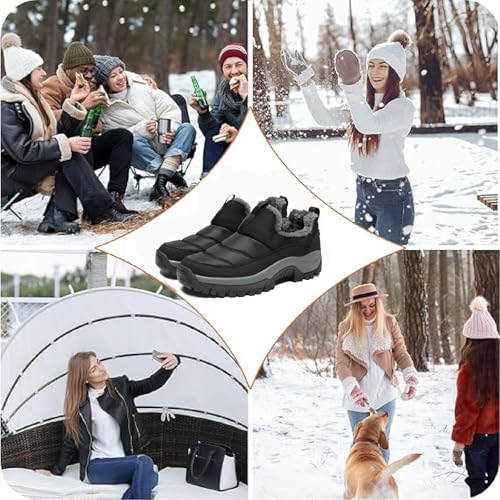 More information about Womens Winter Waterproof Slip On Walking Shoes Comfort Warm Fur Lined Lightweight Anti-Slip Platform Snow Boots Outdoor Mountaineering Hiking Sneakers