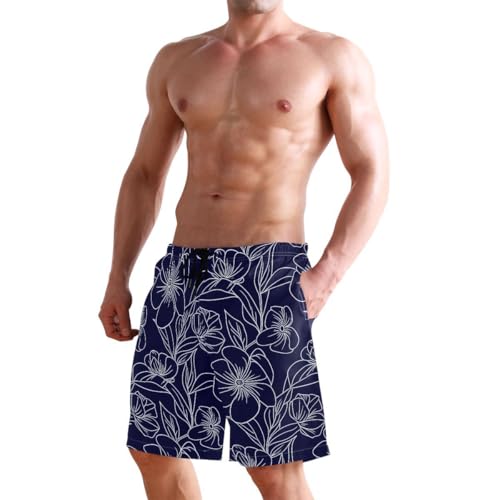 Flowers Floral Blue Mens Swim Trunks Quick Dry Beach Shorts with Pocket S 2302879 2