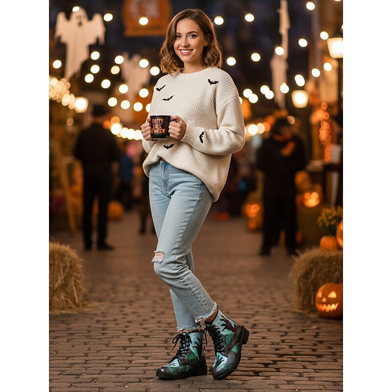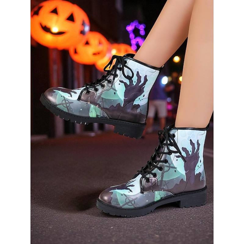 $34.99 - Women's Halloween Zombie Hand Print Lace-Up Combat Boots – Faux Leather Mid-Calf Shoes for Costume Party and Night Out 2025. Shop for cheap Shoes For Women online? Buy at lightinthebox.com on sale today!