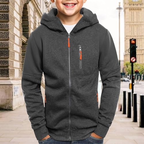 Boys Zip up Hoodi𝐞s Coats Thick Fleece Multi Zipper Pockets Cotton 𝐇ooded Sweatshirts Youth 4