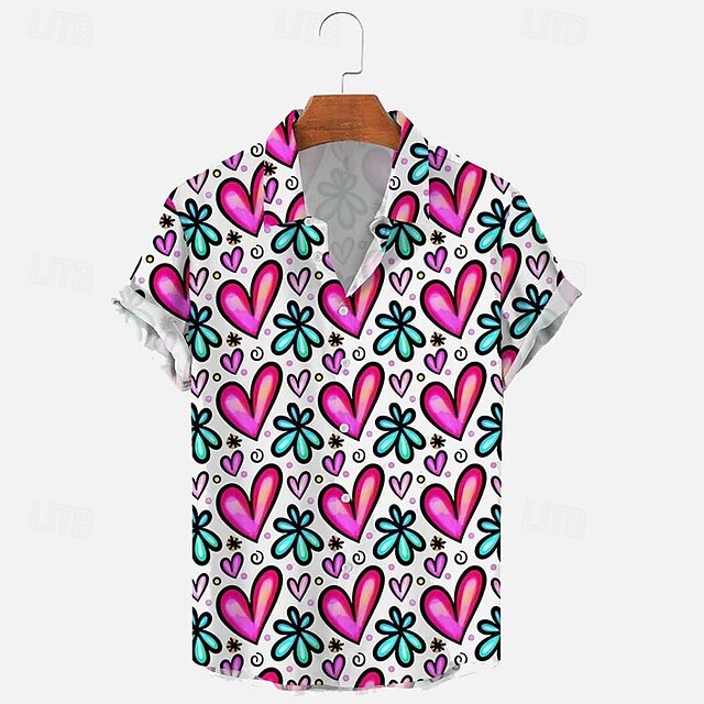 More information about Valentine's Day Men's Heart Casual Shirt Button Up Shirt Short Sleeve Casual Party Causal Casual Summer Spring Turndown Button Up Pink