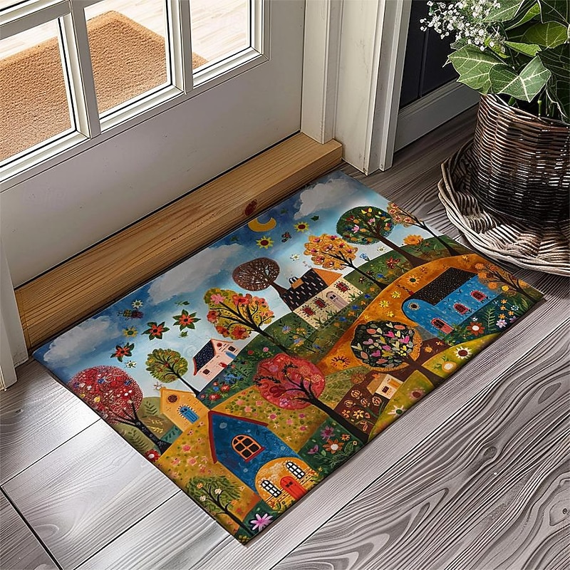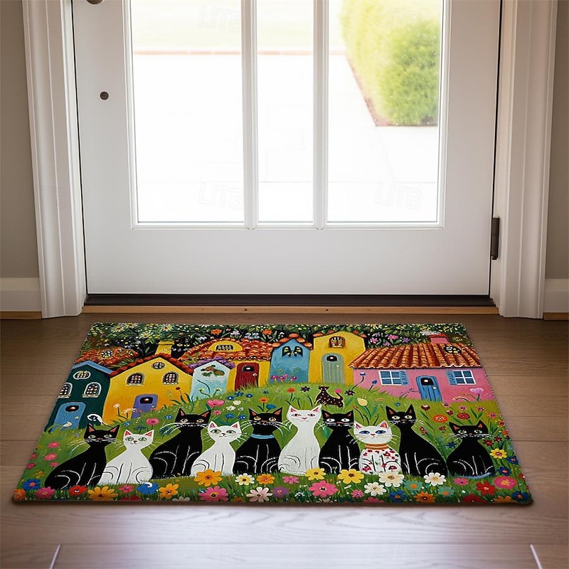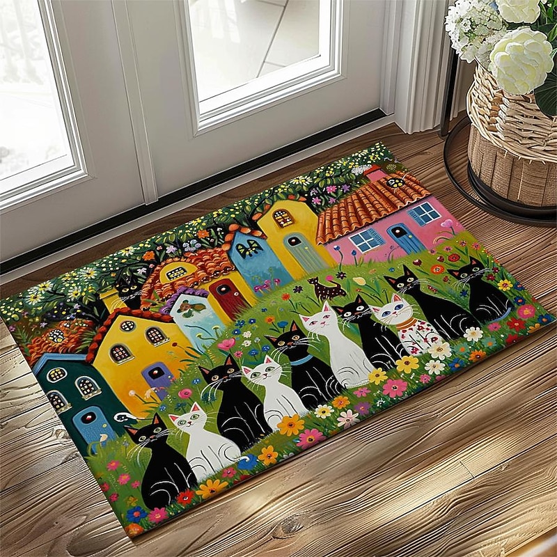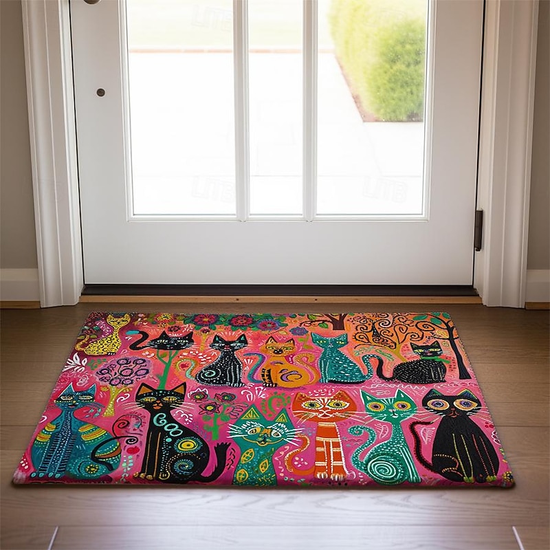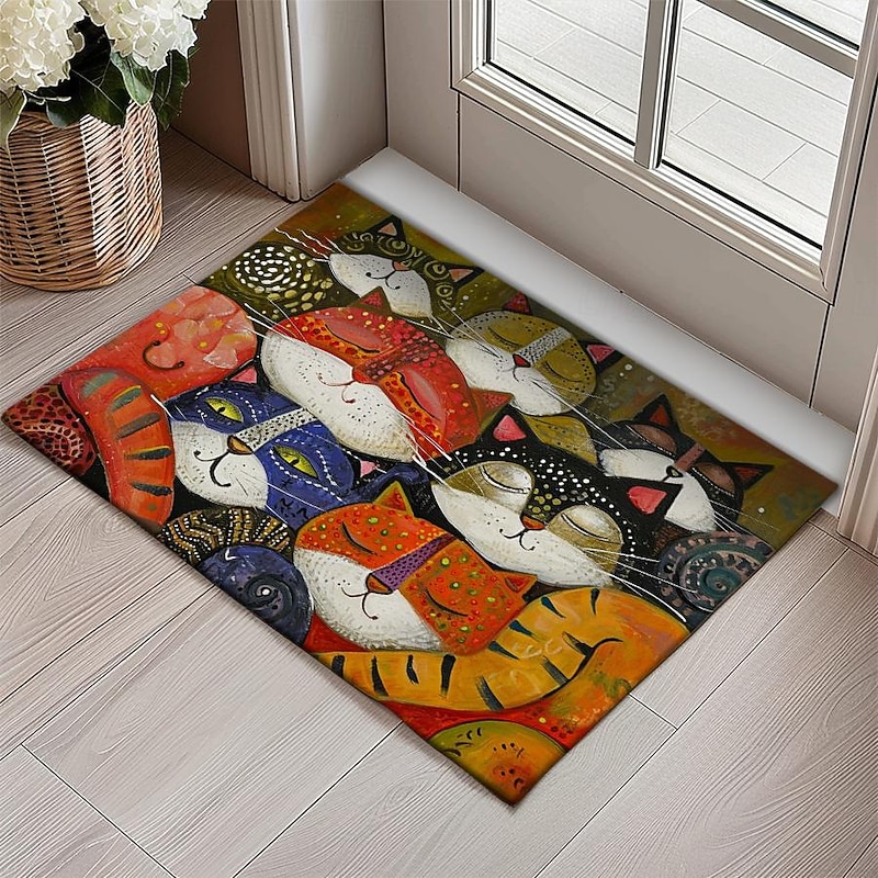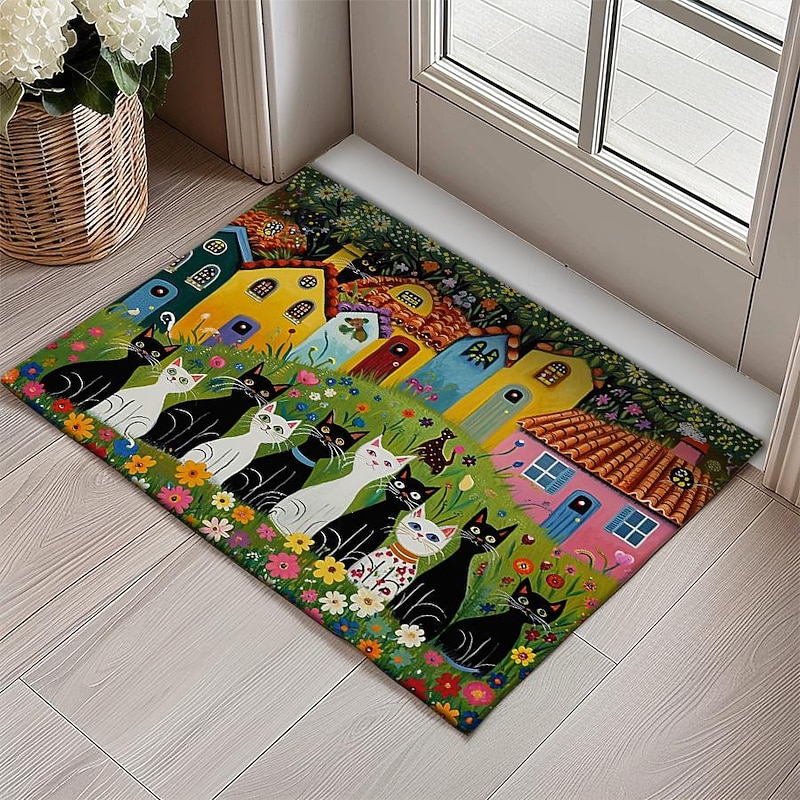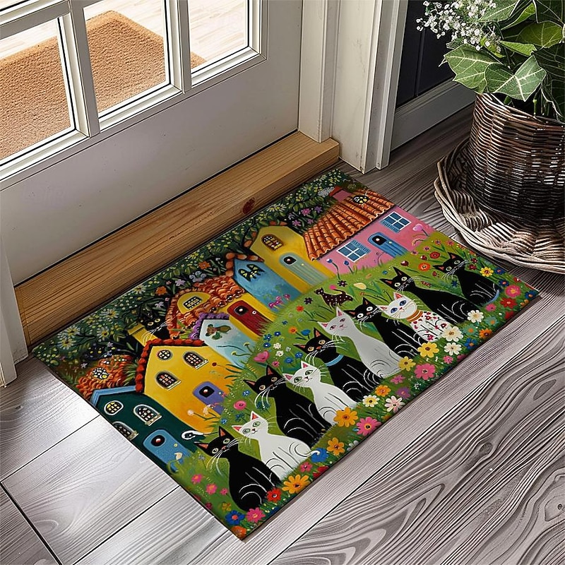 Highlights Whimsical Design: Adorned with charming folk art cats, this mat injects personality into any space, capturing the imagination with its playful motif. Durable Construction: Crafted with high-quality materials, this mat ensures longevity, resisting wear and tear even in high-traffic areas like entrances and kitchens. Non-Slip Backing: Enhanced with a non-slip backing, this mat provides stability and safety, preventing slips and falls, making it ideal for busy households. Versatile Use: Whether placed indoors or outdoors, in the kitchen, bedroom, bathroom, or entryway, this mat adds a touch of flair while serving practical purposes. Oil-Proof and Easy to Clean: Engineered to repel oil and stains, maintaining its pristine appearance with minimal effort, ensuring hassle-free maintenance and long-lasting beauty.