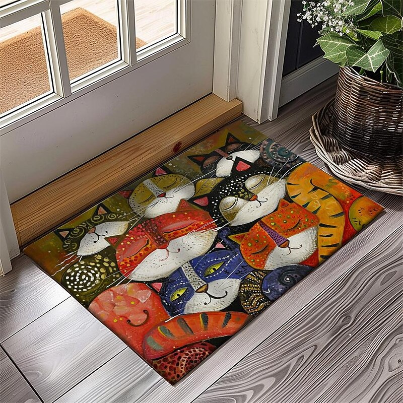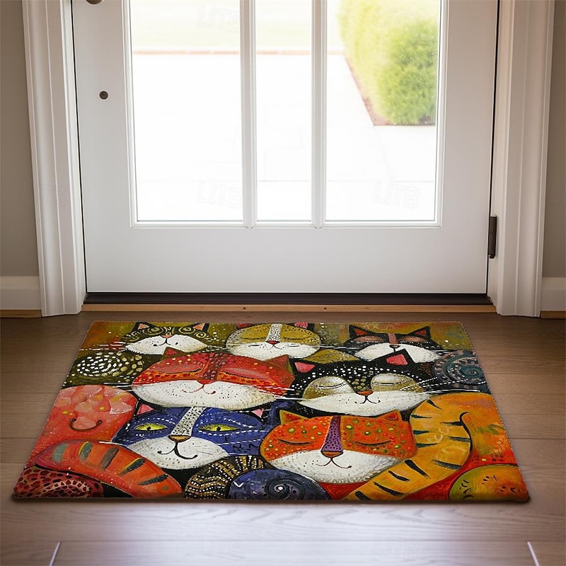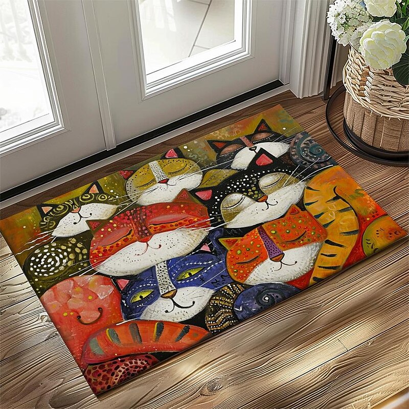 HOT ! Folk Art Cats Doormat Kitchen Mat Floor Mat Non-Slip Area Rug Oil Proof Rug Indoor Outdoor Mat Bedroom Decor Bathroom Mat Entrance Entreyway Rug