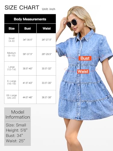 Denim Dress for Women Button Down Short Sleeves Casual Summer Jean Shirt Babydoll Denim Dress 6