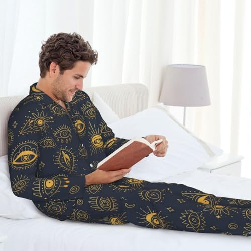 • Evil Eyes Pattern The Men Long Sleeve Pajama Set Includes, 1 Top+1 Pants.
