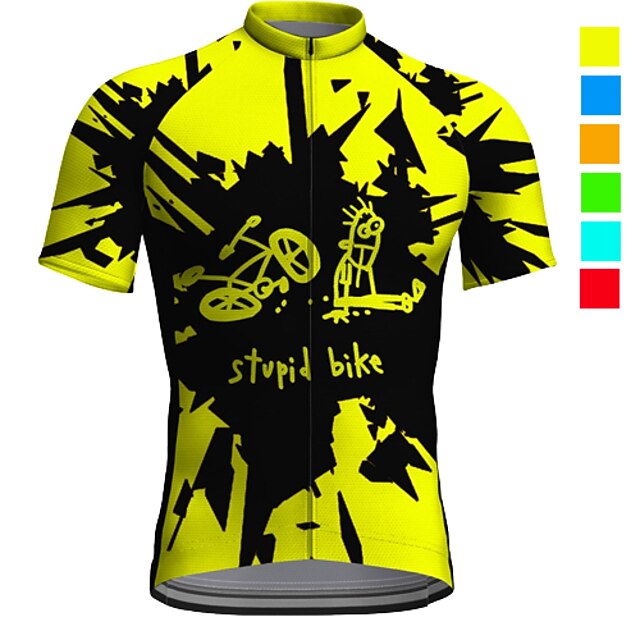 Men's Cycling Jersey Graphic Funny Short Sleeve Bike Top with 3 Rear Pockets Mountain Bike MTB Road Bike Cycling Quick Dry Reflective Strips Back Pocket Moisture Wicking Sports Yellow Red Blue 9